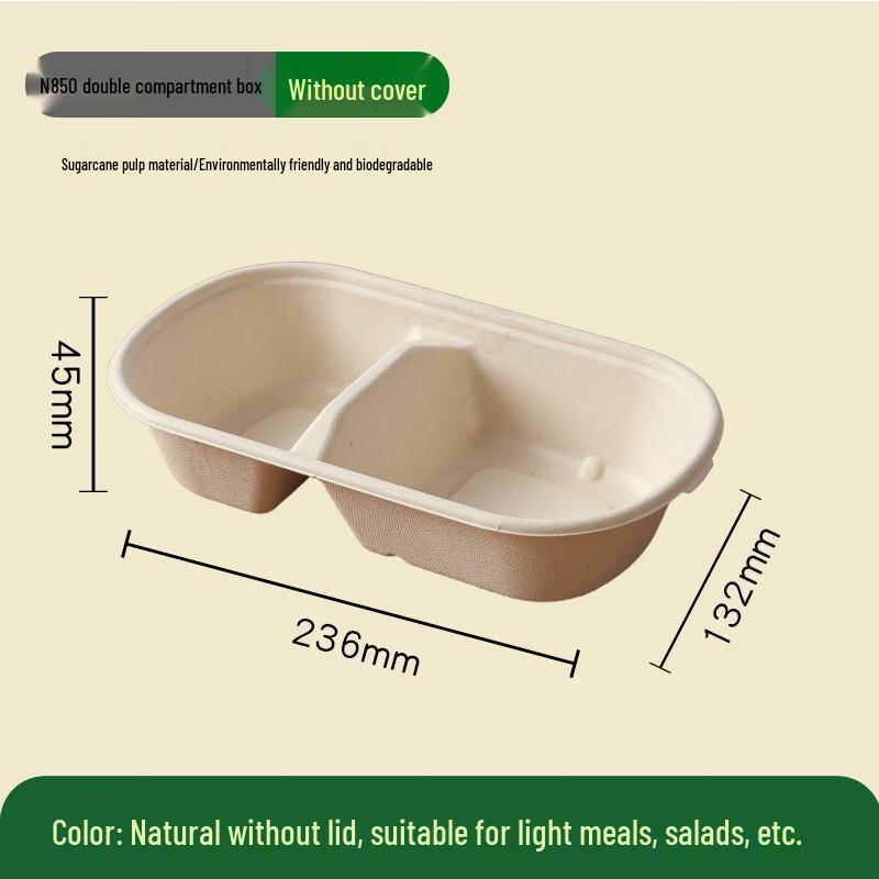 OLOEY 850ml Double Compartment Bagasse Disposable Lunch Boxes with Lids