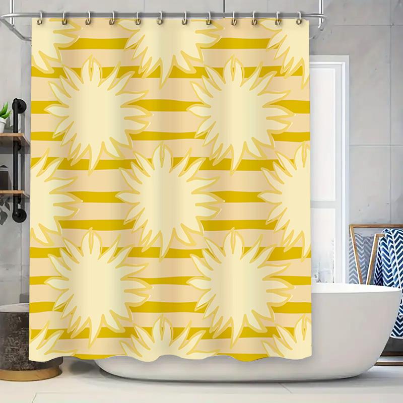 Modern Sunburst Shower Curtain Waterproof Home Decor Bathroom Liner Yellow Stripes Pattern Shower Paneling Tiles Backsplash Remo