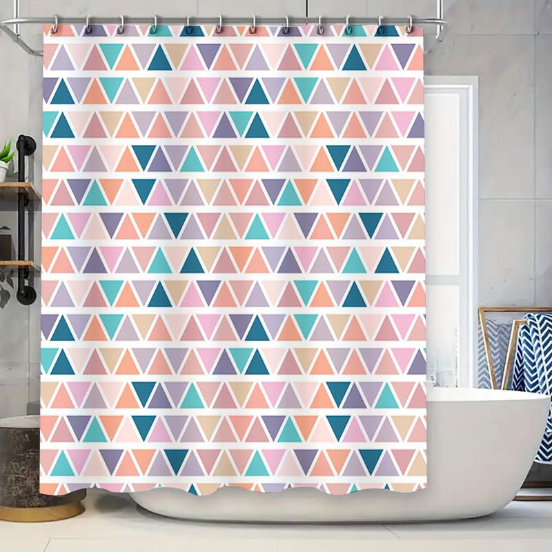 Colorful Triangle Shower Curtain, Bath Decor, Polyester Fabric Perfect for Bathroom Accessories! (Model: Q105)