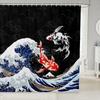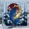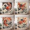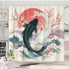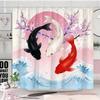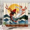 1pc Japanese Ukiyoe Koi Shower Curtain, Cherry Blossom, Red Sun, Snow Mountain Pattern, Easy to Hang, Fashionable Bathroom Decor