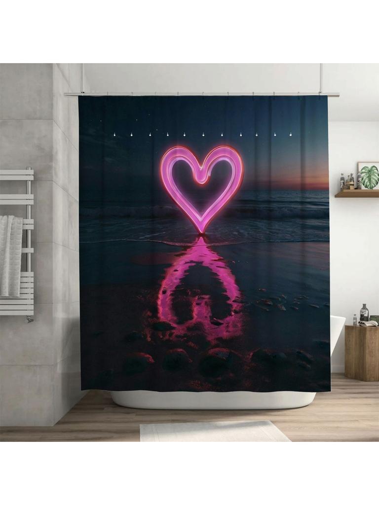 3D Neon Heart Beach Shower Curtain | Romantic and Modern Bathroom Decor