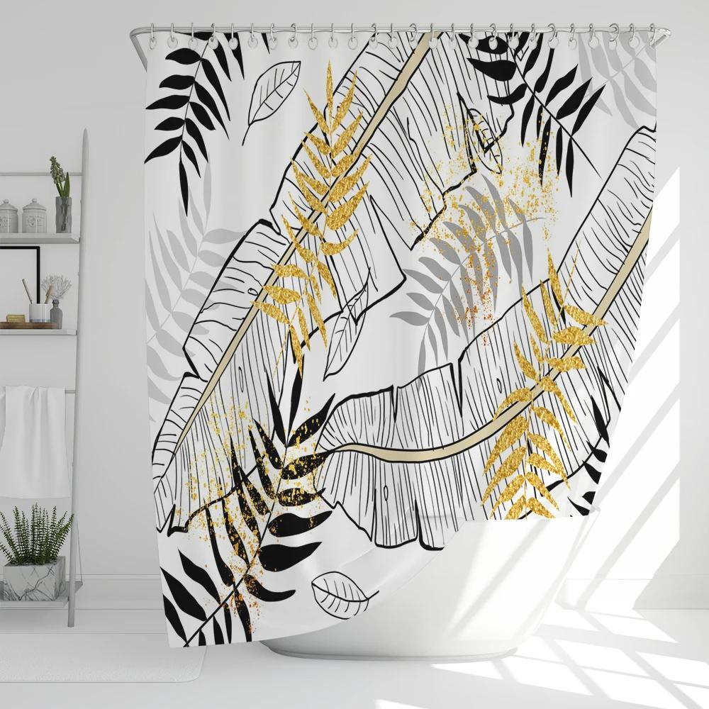 Simple style Plant Leaves Shower Curtain with Hook - Modern Leaf Design, Printed polyester fabric Bathroom Decoration Curtain