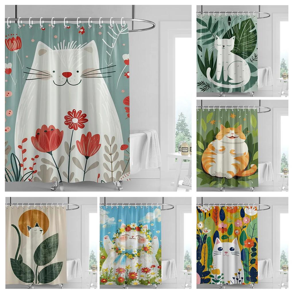 וילון מקלחת יער חתולים 70x72 אינץ' בד עמיד למים עמיד בפני עובש וילון אמבטיה סגנון INS וילונות אמבטיה חמודים