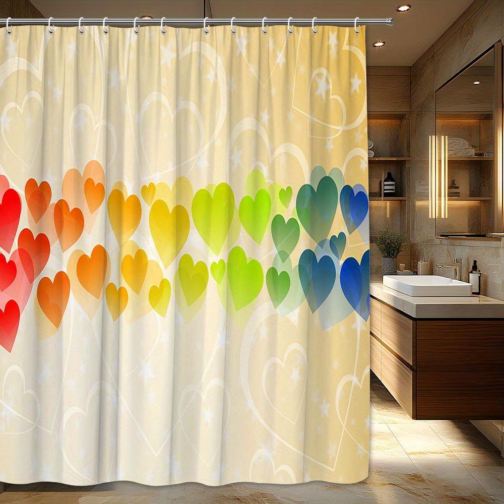 1pc Whimsical Heart Shower Curtain - Rainbow Gradient, Vibrant Glossy Hearts, Polyester, Playful Bathroom Decor