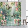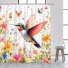 Hummingbird Shower Curtain Watercolour Floral Purple Lavender Butterfly Plant Polyester Fabric Bathroom Curtain Decor With Hooks