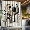 Artistic Botanical Shower Curtain – Golden Accents, Black & Gold Abstract Leaf Design, Polyester with Hooks, Machine Washable