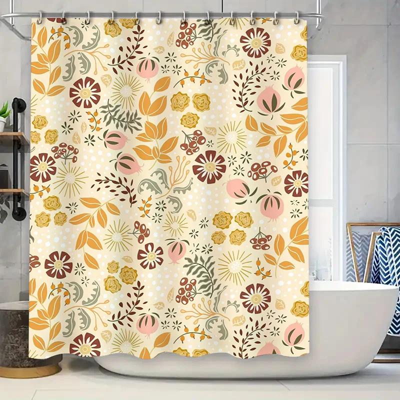 Vintage Floral Shower Curtain Cream White Multicolor Boho Decor Bath Mat Set for Bathroom Home Decoration Waterproof Fabric
