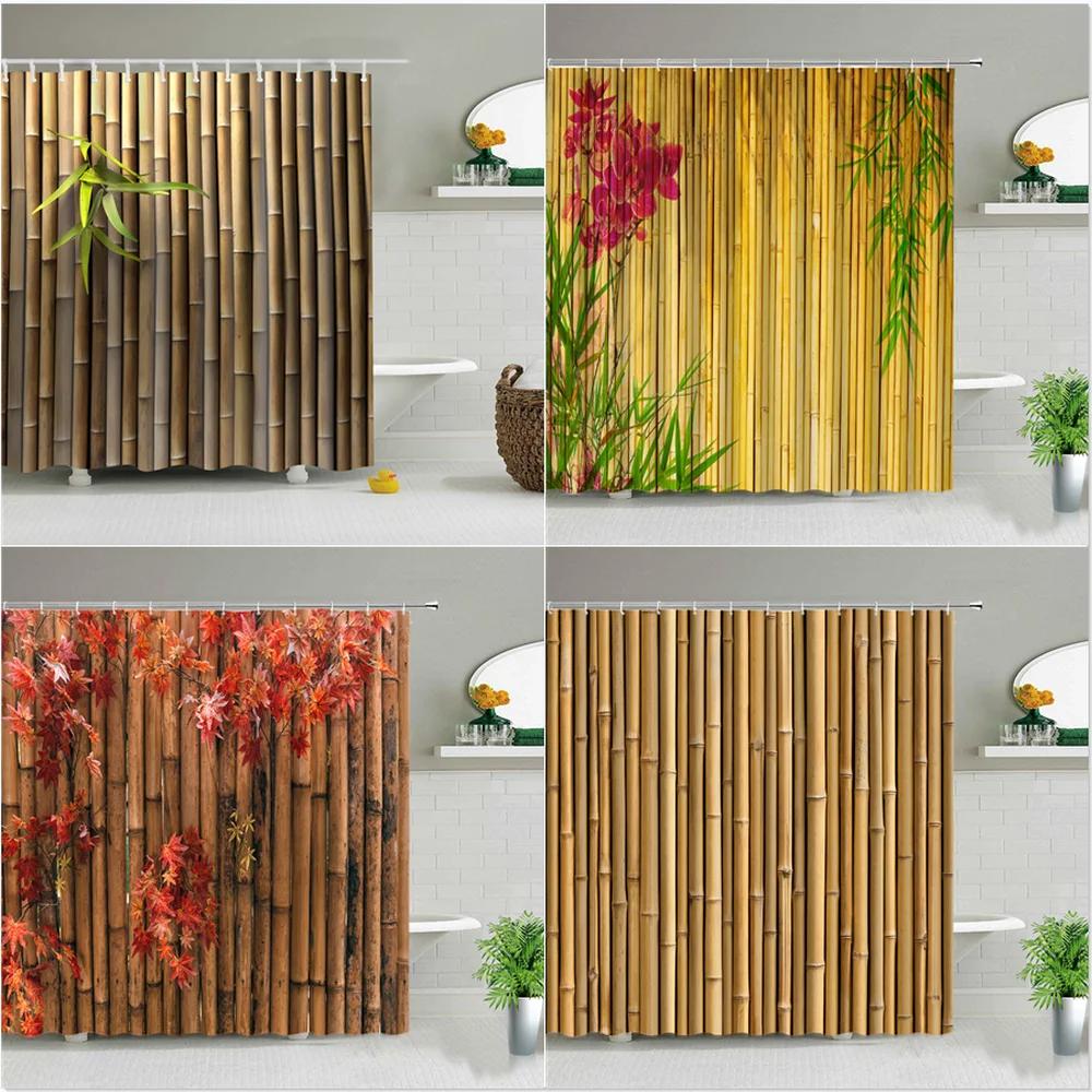 Chinese Style Green Bamboo Series Shower Curtain Set Waterproof Home Bathroom Decor Curtains With Hook Popular Bath Accessories