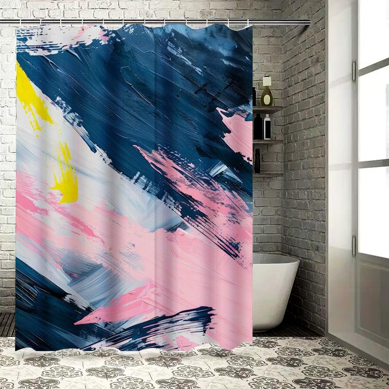 Artistic Watercolor Design Shower Curtain for Bathroom Decor Navy Blue Pink White Yellow Waterproof Fabric Bath Mat Cover Size 7