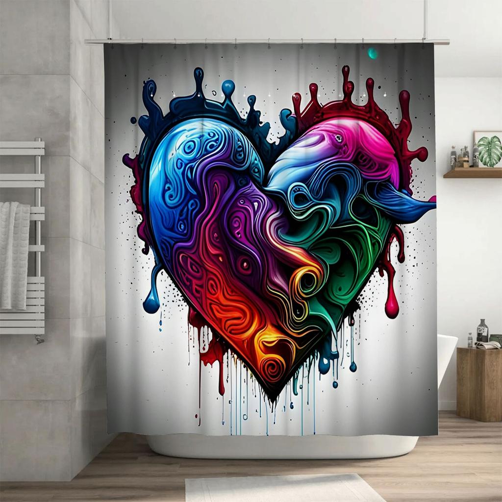 Abstract Dripping Heart Shower Curtain - Waterproof, Mildew-Resistant, Machine Washable for Artistic Bathroom Decor