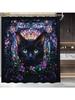 Black Cat Shower Curtain Stained Glass Funny Kitty Floral Abstract Art Gothic Style Halloween Fabric Bathroom Decor Set
