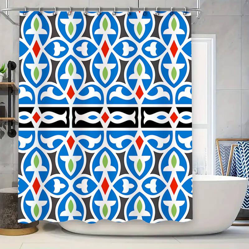 Blue Floral Print Shower Curtain Blue Green White Red Black Modern Decor Bathroom Decoration Size 72x84 Inch (1 Set)