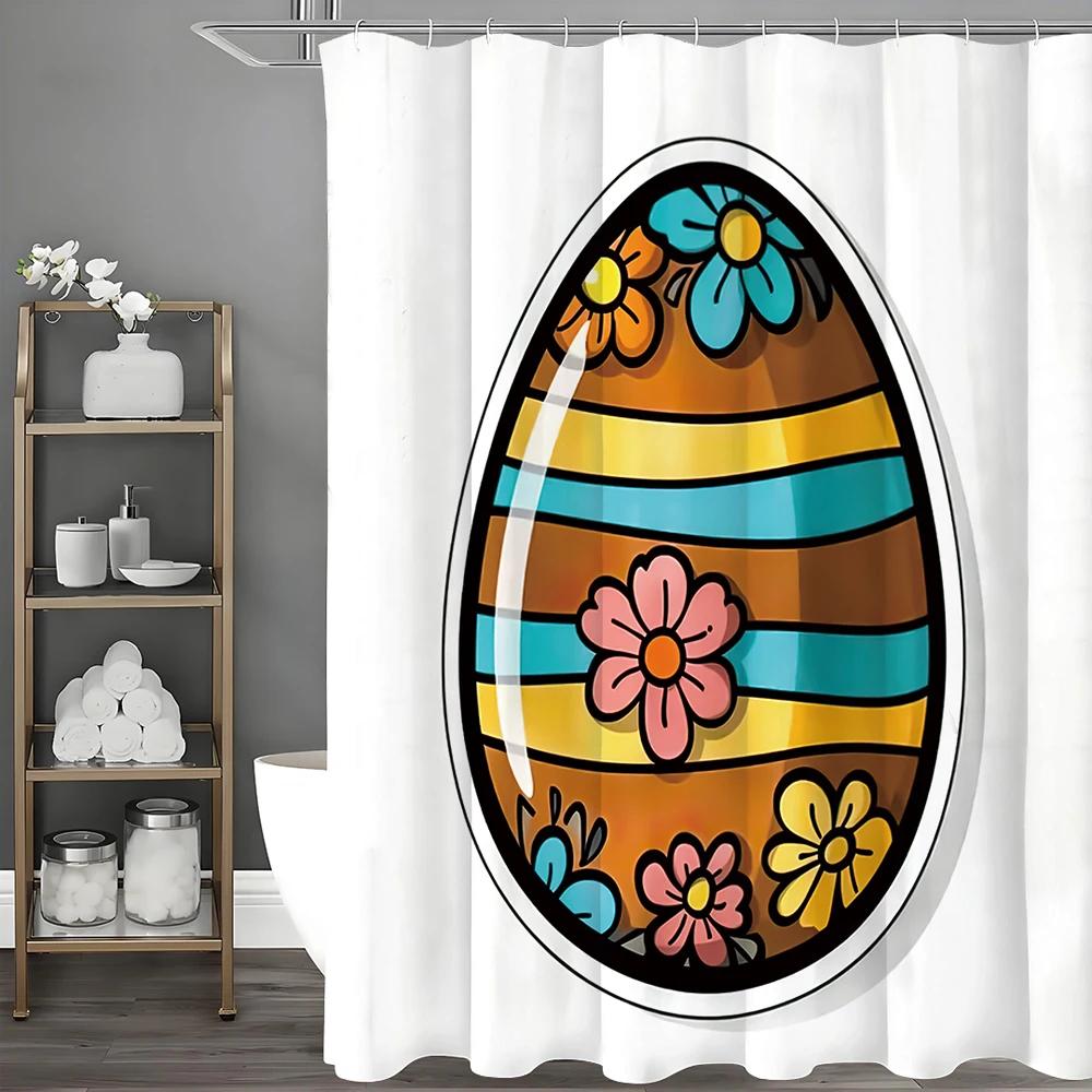 Easter Egg Shower Curtain, Bathroom Decorative Shower Curtain, Waterproof Shower Curtain with Hooks
