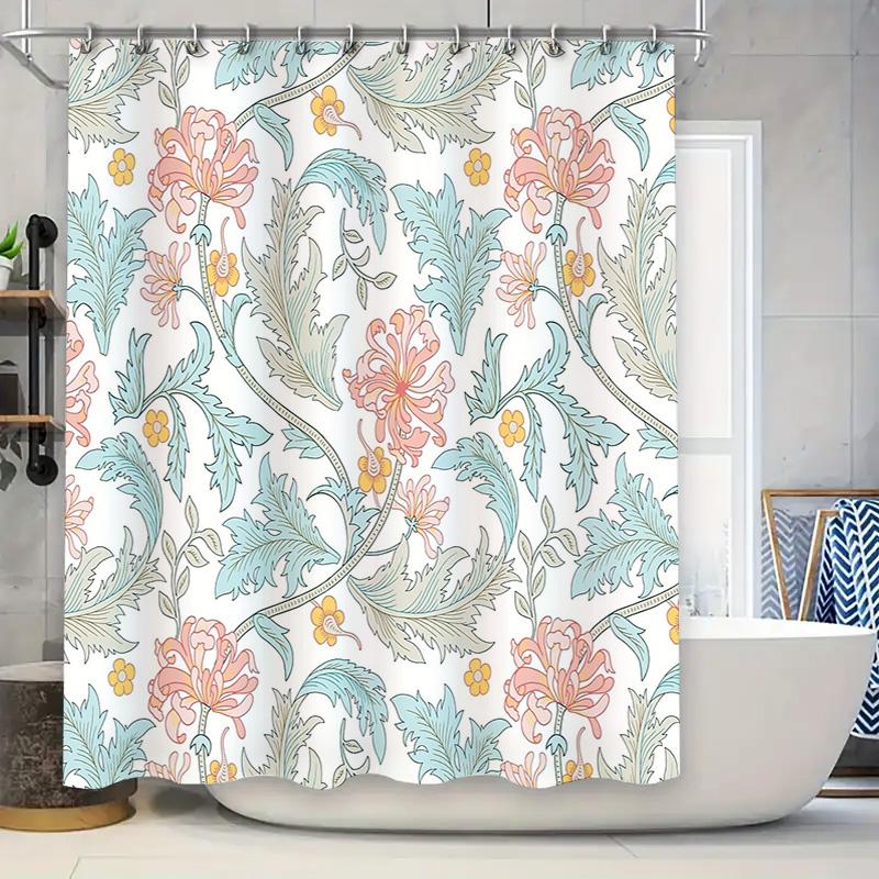 Floral Shower Curtain Botanical Nature Pattern Bathroom Decor Waterproof Fabric Liner Vintage Style Washable Modern Home Textile