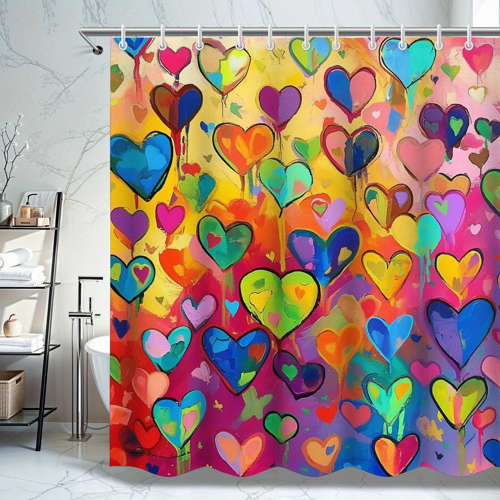 Valentine's Day Shower Curtain - Colorful Heart Pattern, Vibrant Polyester, Perfect for Valentine’s & Mother’s Day Gifts
