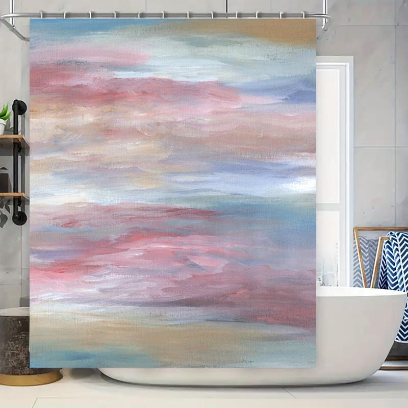 Modern Bathroom Decor Shower Curtain Abstract Watercolor Design for Home Use.