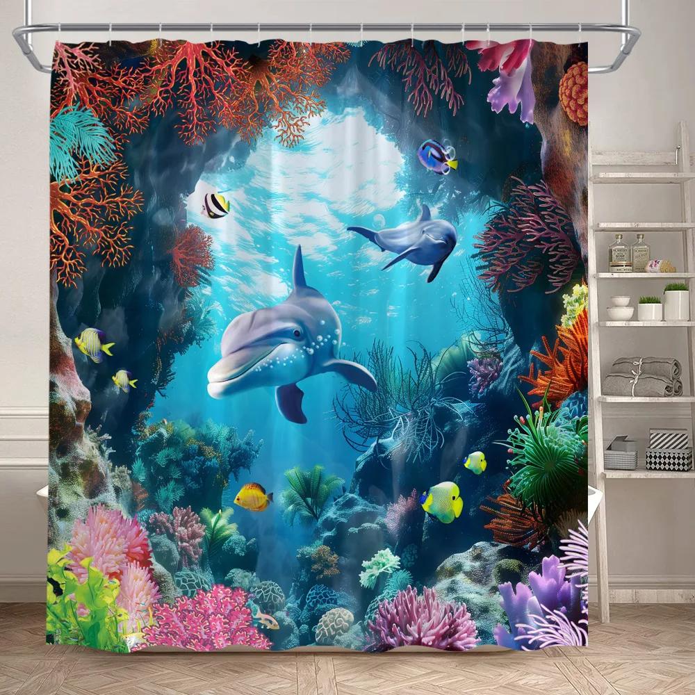 VIKAMA Underwater World Theme Shower Curtain - Waterproof and Mold-Resistant Bathroom Partition Curtain for Home Decoration