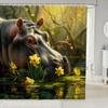 Cartoon Sheep Bath Curtain Cute Farm Animal Shower for Kids Boys Girls,Pink White Flower Floral Bathroom Curtain Botanical