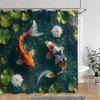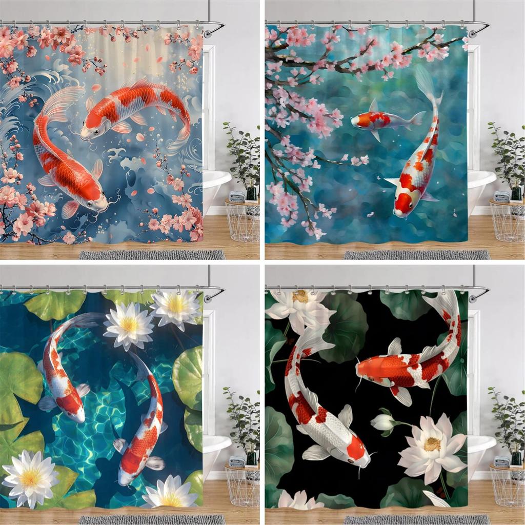 Japanese Style Shower Curtain Koi Fish Cherry Blossom Sun Sea Wave Octopus Landscape Polyester Fabric Curtains Bathroom Decor