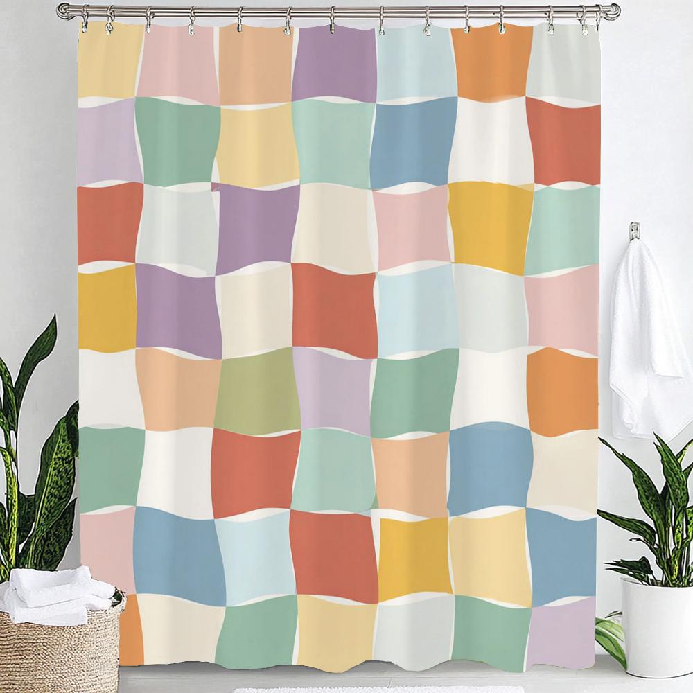 Modern Plaid Grid Print Waterproof Shower Curtain Bathroom Curtain,Hanging Curtain 12 Hooks Decoration Machine Washable