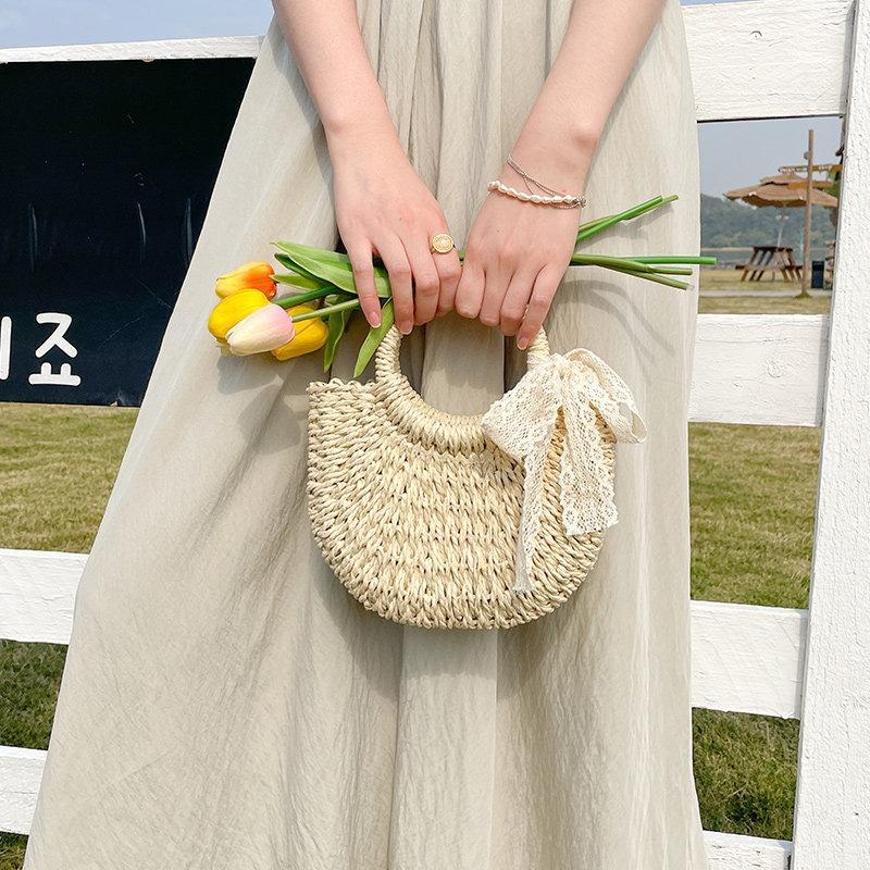 Summer woven bag women's niche design semi-round straw woven bag leisure vacation wind beach bag women's portable messenger bag