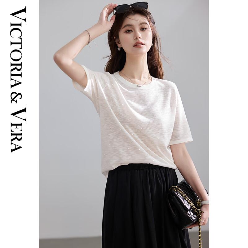 VICTORIA&VERA Sequin Design Lightweight Knitted Short Sleeve Top
