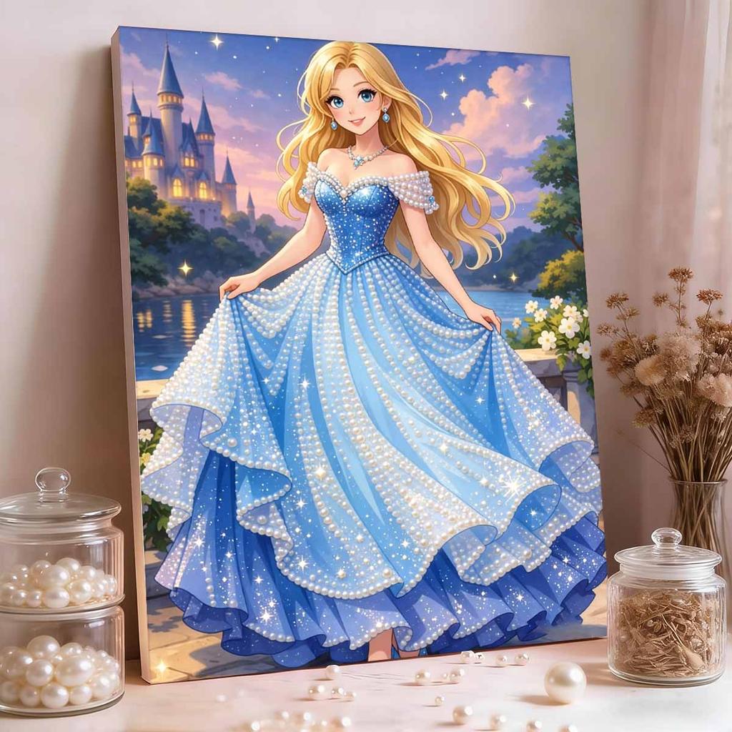 Starry Castle Cinderella New Pearl-Inlaid Frameless Art | Handmade Pearl Craft, Castle Lake Starry Theme, for Romantic Fairy Tale Decor