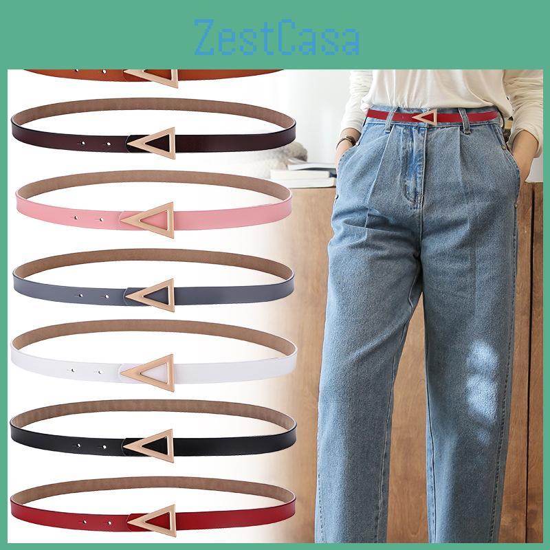 Ladies Genuine Leather Belt With Triangle Buckle And Minimalist Style For Work And Casual Looks