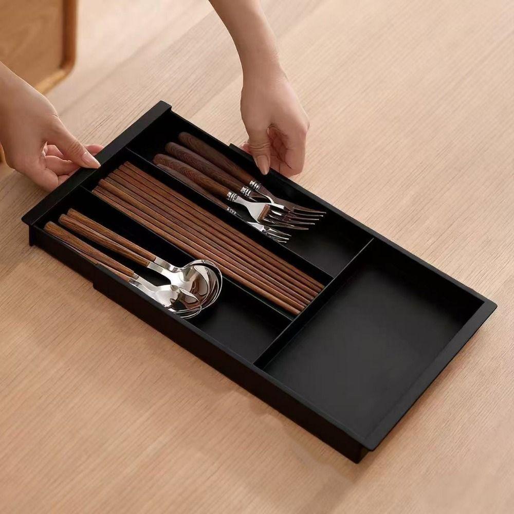 Space Saving Adjustable Flatware Tray Plastic Silverware Drawer Organizer Utensil Tray Bedroom