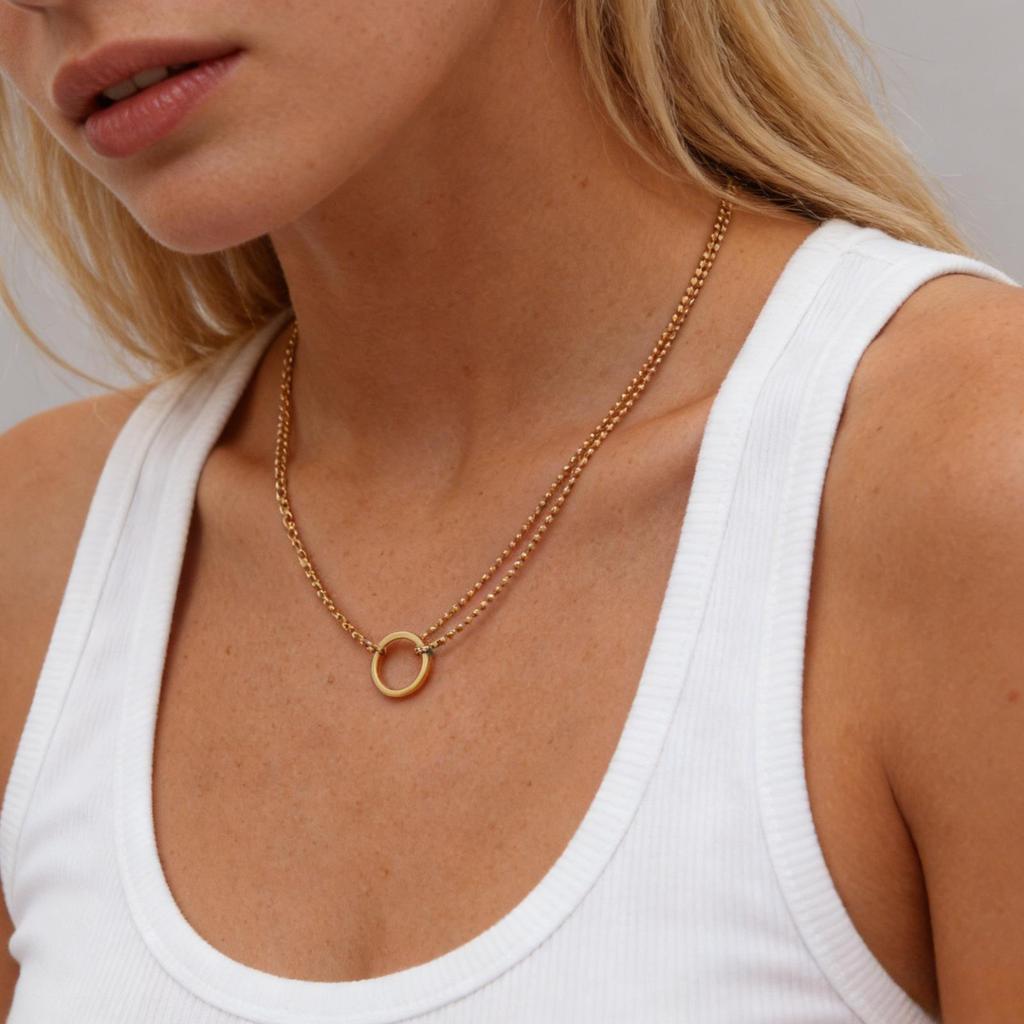 Vintage Stacked Circle Double-Layer Necklace Female Sweet Cool Wind Stacked Collar 18K Gold Titanium Steel Necklace