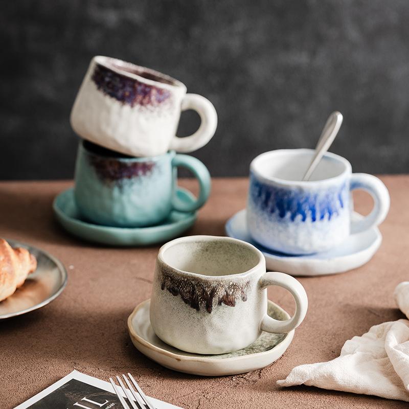 Handmade Ceramic Mug Set Glaze Change Retro Coffee Cup Coarse Pottery Rustic Home Decor Tea Drinkware