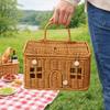 With Handle Rattan Picnic Basket House Shaped Clutter Organizer Desktop Organizer Picnic Supplies