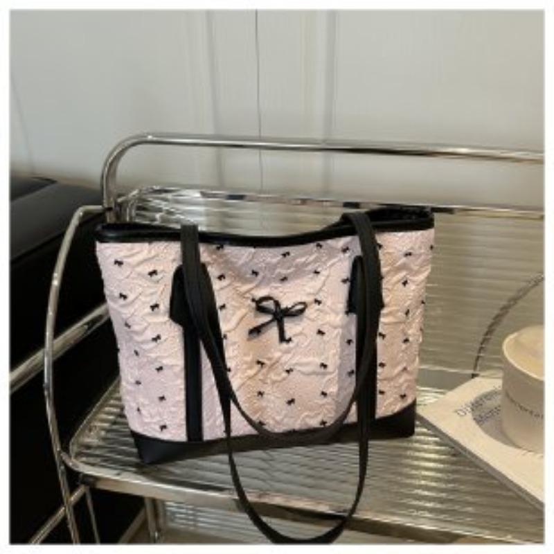 Niche design bow tote bag women's 2 new large-capacity pink shoulder bag commuter versatile underarm bag