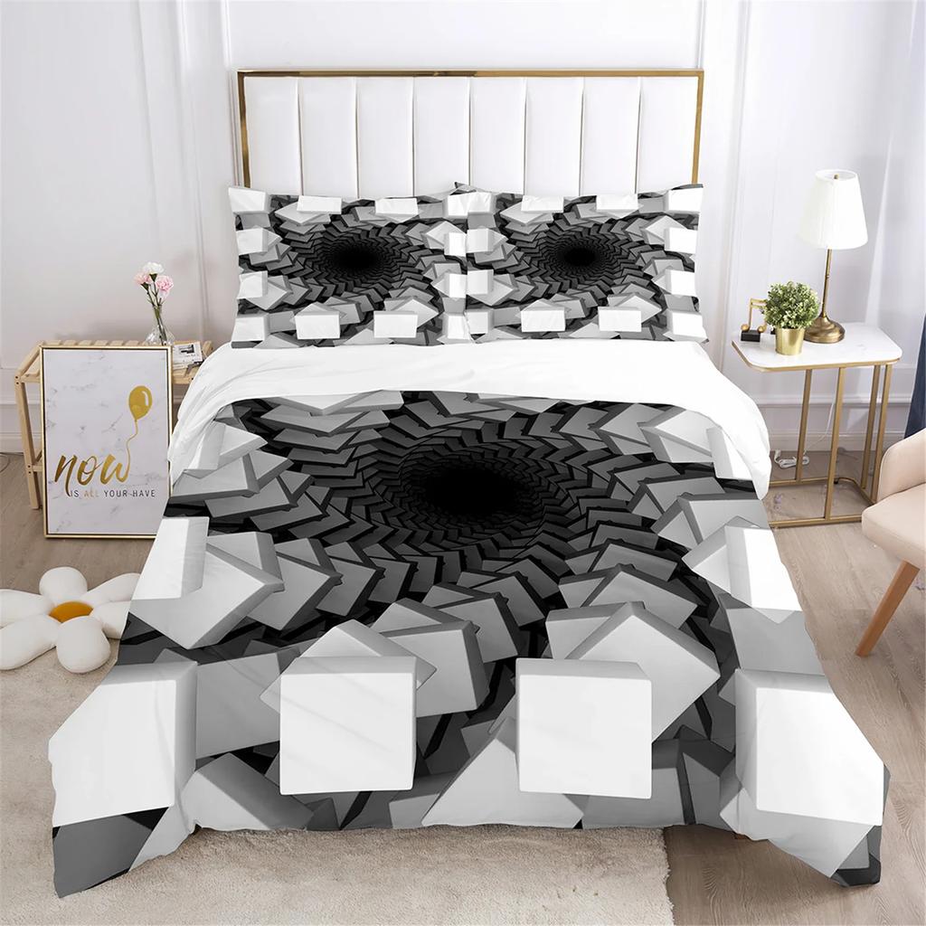 Durable Vibrant Double Polyester For Bed Abstract Style Print Honeycomb Pillowcover Black And White Quilt