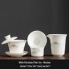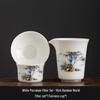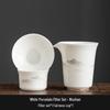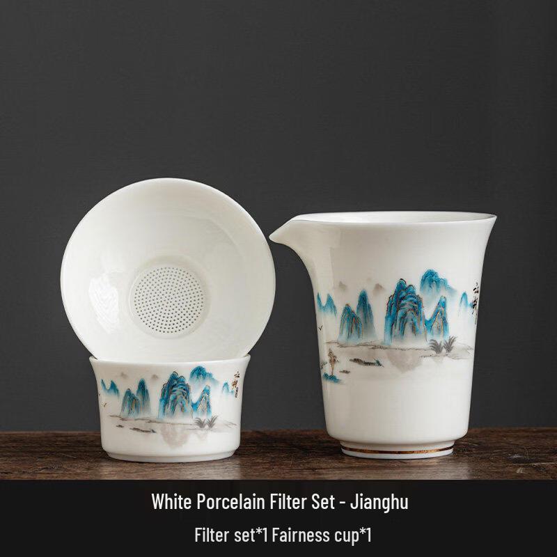 Experience traditional tea brewing with the Jianghu White Porcelain Tea Strainer and Pitcher Set. Crafted from high-quality white porcelain and kaolin clay in Dehua, this non-handmade set features underglaze decoration for an elegant touch. Perfect for serving tea with fairness and style.