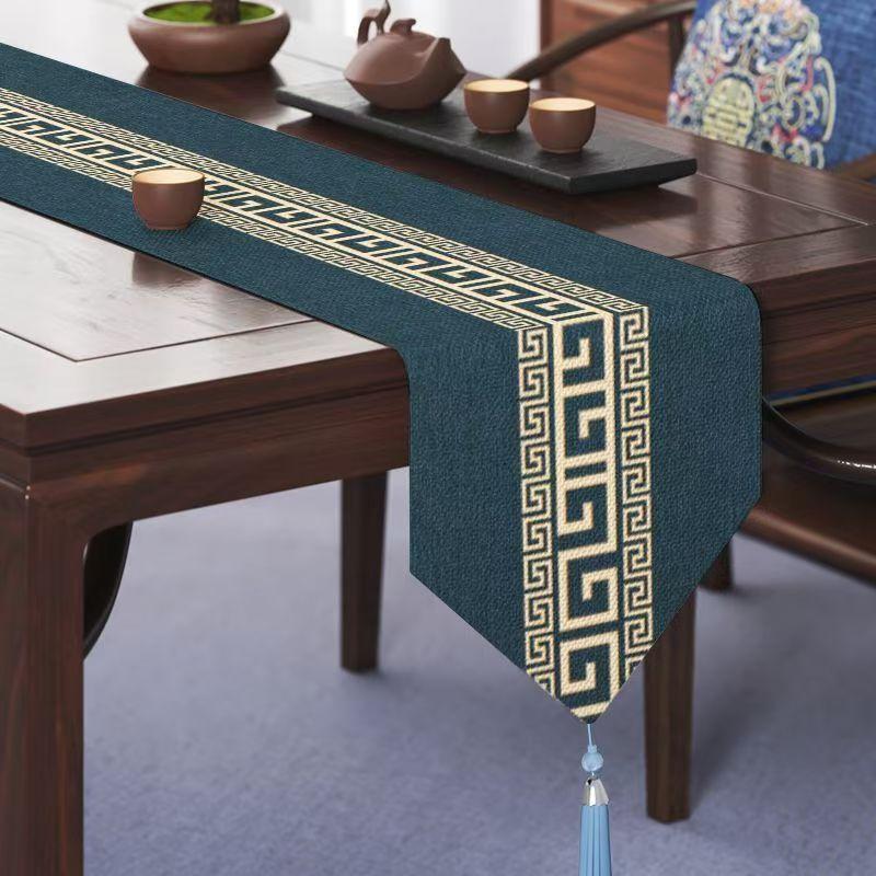 Chinese Style Table Flag Waterproof Oil Resistant Tassel Table Runner Tea House Tea Towels Zen Tea Table Cloth Hotel Bed Flag