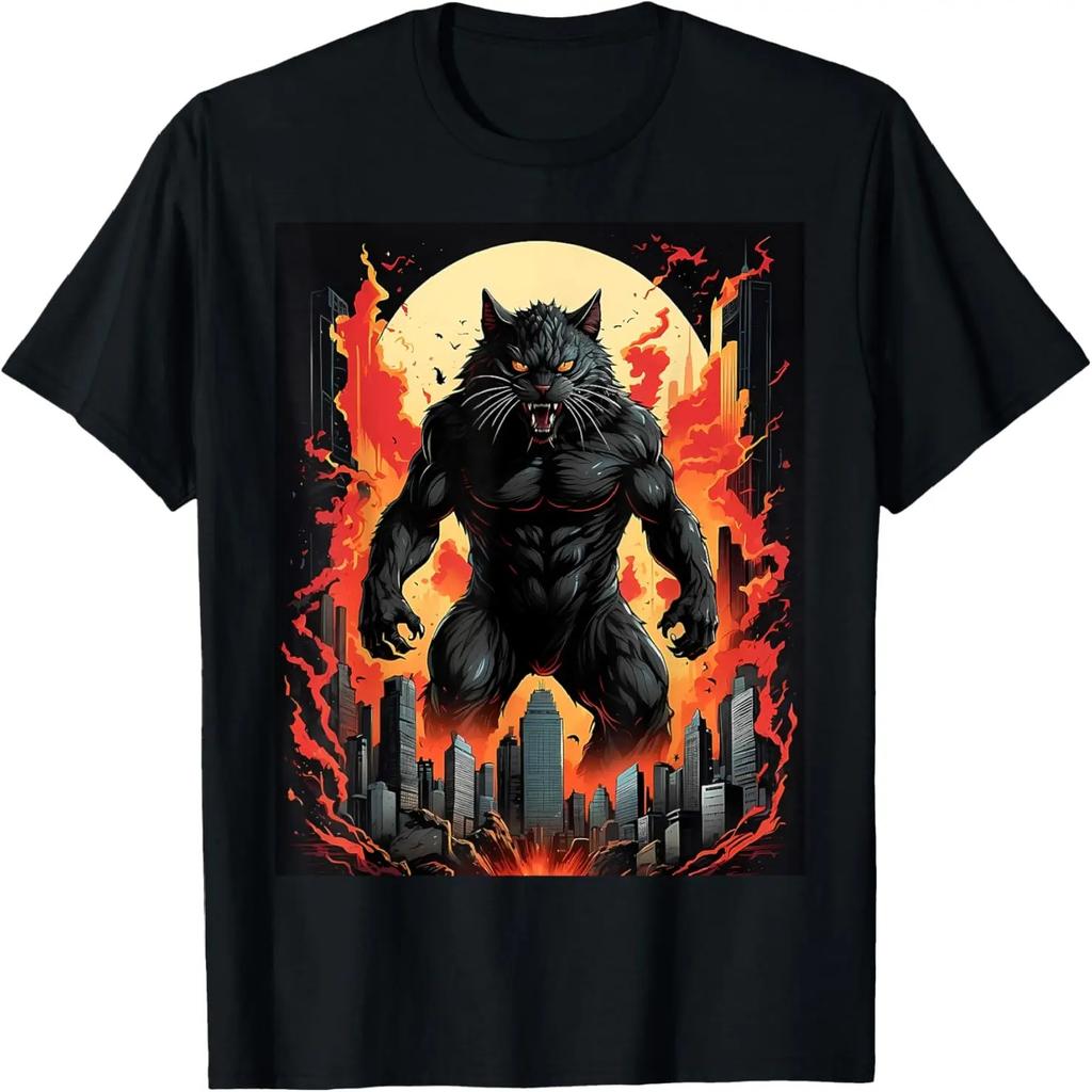 Catzilla Monster Movie Parody Cool Fire Anime Cat Graphic T-Shirt