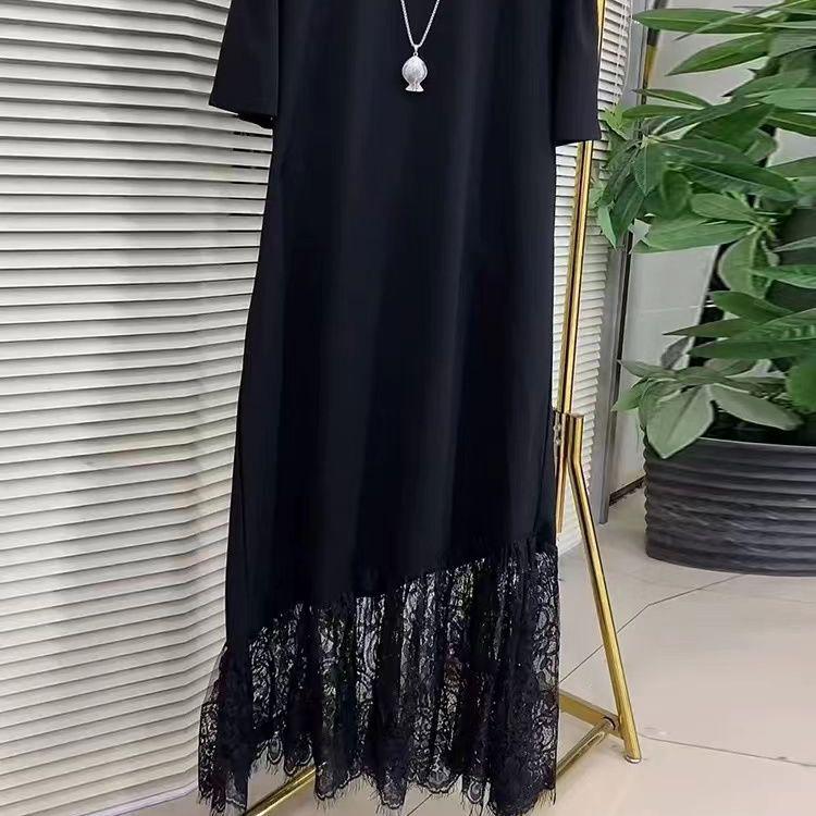 Plus Size Women's Short Sleeve Lace Hem Midi Dress - Age-Reducing, Slimming, Casual Style for 300 Jin MM