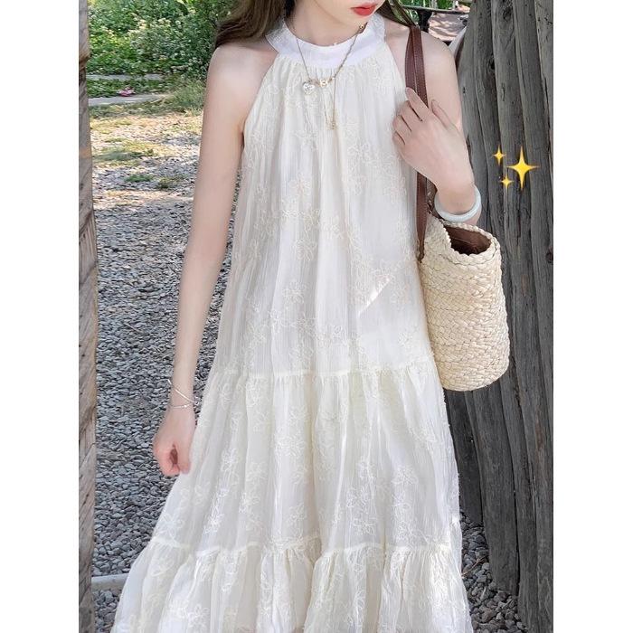 Women's Elegant Sleeveless Lace Halter Neck Off-Shoulder Midi Dress, Summer 2026 Collection
