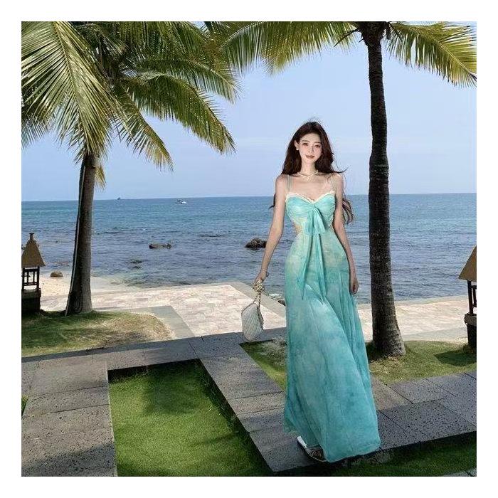 Embrace a breezy and stylish look with this beautiful beach dress, designed for those who love a blend of comfort and fashion. Crafted from lightweight polyester, the dress features a vibrant Bohemian print that adds a touch of artistry to your wardrobe. The spaghetti straps and backless design create a carefree and airy feel, perfect for sunny days by the sea. Ideal for women who appreciate both elegance and ease, this dress is a must-have for your summer collection. Fabric Name: Polyester Pattern: Color matching Skirt Length: Midi Skirt Skirt Type: A-line skirt Collar: V-neck Sleeve Type: Sleeveless Sleeve Length: Sleeveless Waist Type: Mid-rise Main Fabric Composition: Polyester (polyester fiber) Main Fabric Content: 70% (inclusive) - 80% (exclusive) Version: Slim-type Suitable Body Types: Slim-type Style: Versatile style Manufacture country: China Instructions included: No