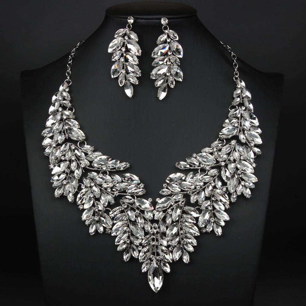 2026 European and American Exaggerated Atmosphere Luxury Artificial Crystal Necklace Earrings Set Female Banquet Dress Bride Accessories