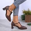 Women's High Heels Shoes Narrow Band T-strap Thick Med Heel Elegant Ladies Daily Slim Dress Pointed Toed Women Single Shoes