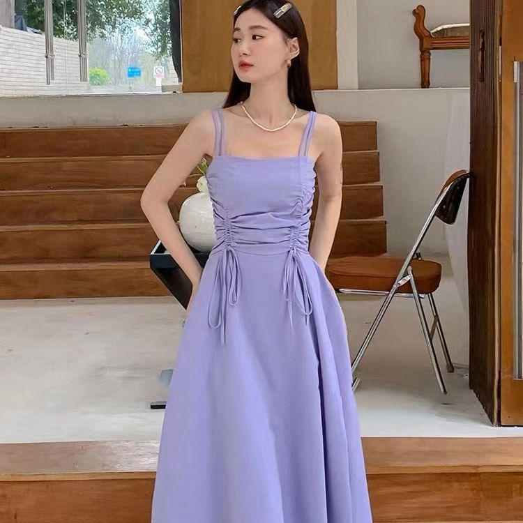 Women's Summer Drawstring Pleated Camisole Dress - Slimming Bodycon Bandeau Design