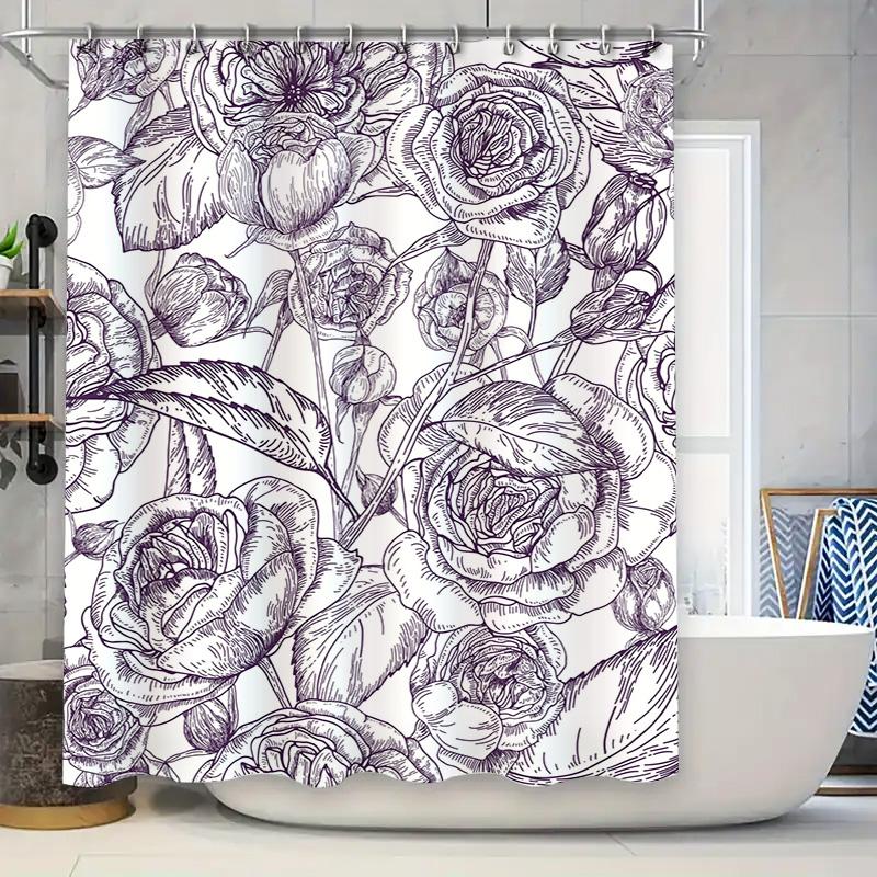 Elegant Dark Floral Print Shower Curtain Waterproof Bathroom Decor 3D Polyester Water Repellent High Quality Size Customizable