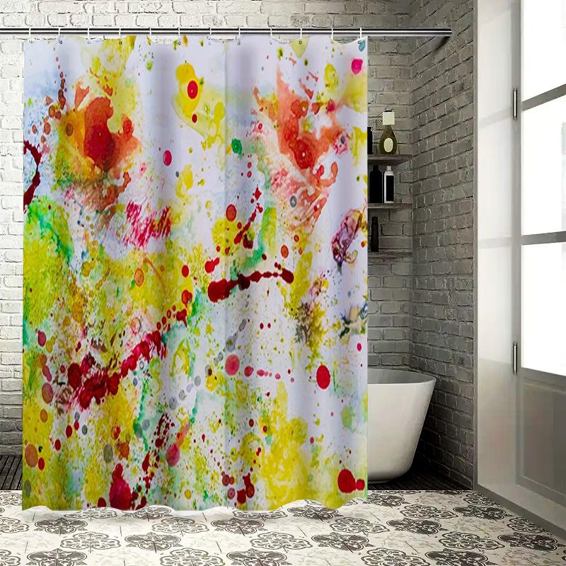 Watercolor Splatter Shower Curtain Decorative Printing Bath Rug Tiled Waterproof Home Bathroom Accessories Various Sizes Availab
