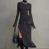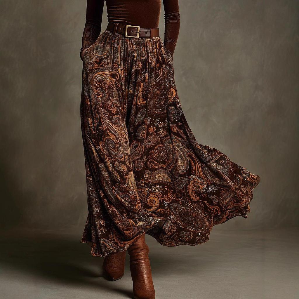 2025 European & American Slim Fit Top & Elegant Retro Print Long Skirt Set with Belt
