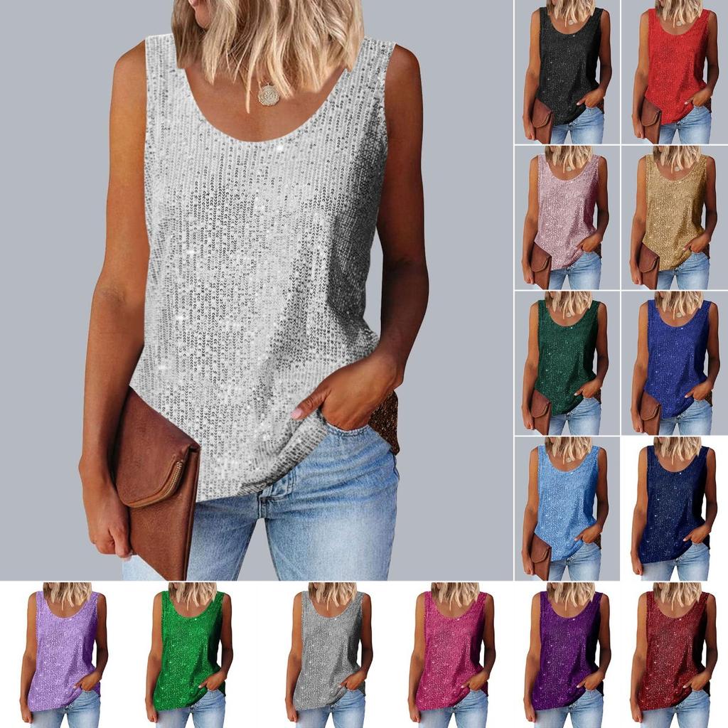 Women's Top, Commuting Sequins, Loose Fitting, Round Neck Vest, Comfortable and Casual