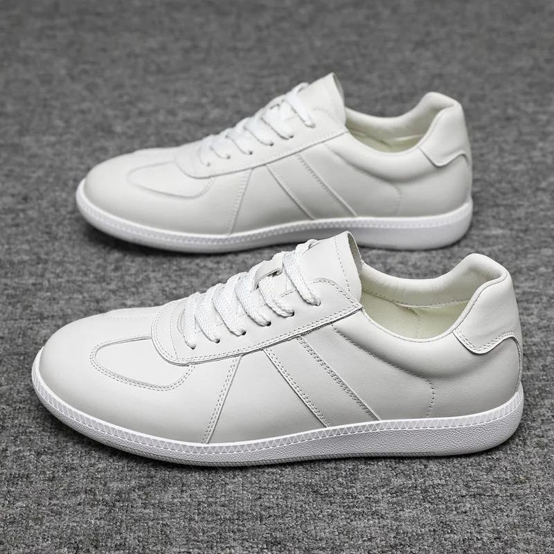 Europe Men Genuine Leather Casual Shoes White Flat Skate Shoes Street Fashion Lace-up Sneaker