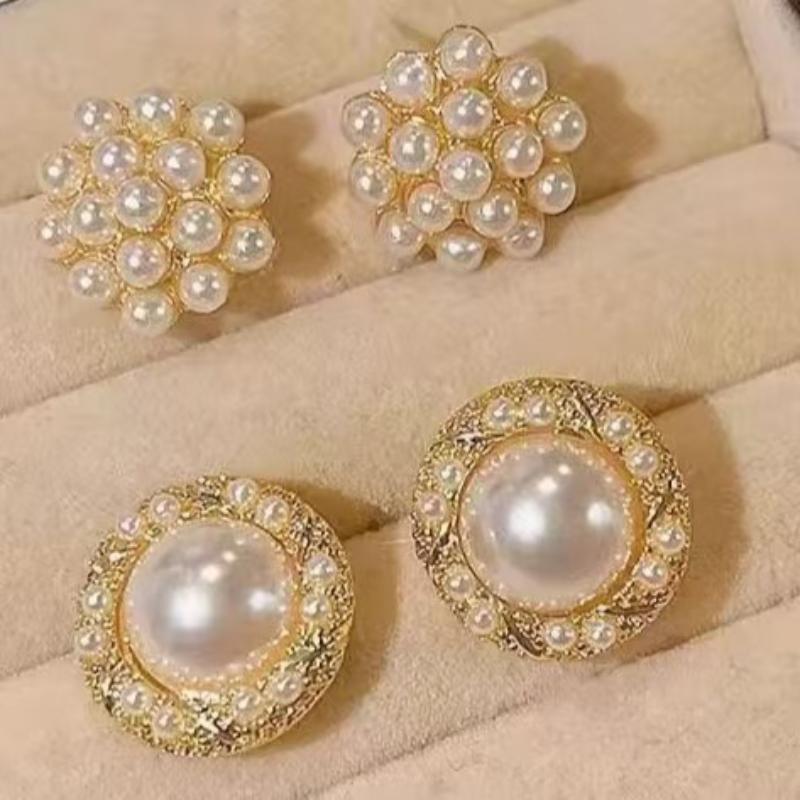 6Pairs/Set Elegant Temperament Imitation Pearl Round Square Earrings Women Daily Wear Holiday Accessories Gifts