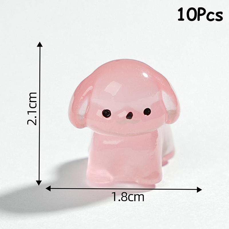 10Pcs Colorful Kawaii Luminous Resin 3D Puppy Ornaments Miniature Figurines Creative Diy Home Decoration Accessories Gifts
